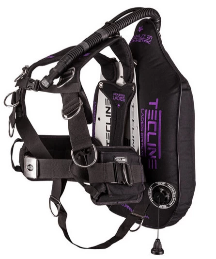 Jest to wersja sprzydła Tecline Peanut 21 Travel Ultralight dedykowana dla kobiet. Stylowy czarny worek został obszyty purpurowym haftem "Ladies Edition". Aluminiowa płyta znacznie redukuje wagę skrzydła. Waga całego zestawu to tylko 2,94 kg. Znacząco ułatwia to zmieszczenie się w limicie dopuszczalnego bagażu na lotnisku. Nowa propozycja od TECLINE została stworzona z myślą o podróżowaniu. Skrzydło bez problemu zmieści się na dnie każdej walizki.Mimo niewielkich rozmiarów skrzydło ma aż 21l wyporności. Asymetryczna konstrukcja umożliwia niezwykłą swobodę ruchów pod wodą. Idealne ułożenie worka pozwala na lepsze zachowanie pozycji oraz zapobiega krepowaniu ruchów głowy. Inflator oraz zawór upustowy został zamontowany w bardzo intuicyjnym miejscu. Umożliwia to bardzo szybkie i proste pozbycie się gazu z worka oraz pozwala nam na lepszą kontrolę pływalności. Zastosowanie dwóch pancernych warstw, zewnętrznej CORDURY 1000D oraz wewnętrznej PU240 czyni skrzydło Peanut 21 niemal niezniszczalnym.